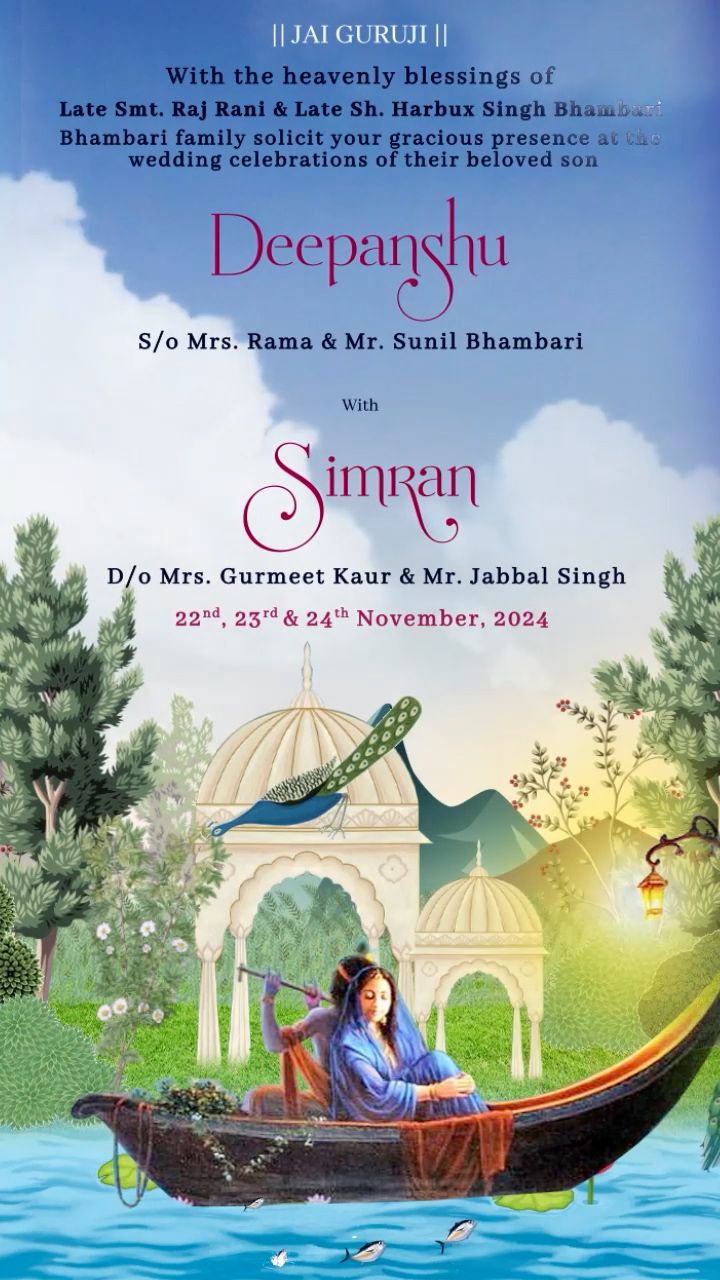 The video captures every special event — from the Shagun and Sangeet to the Wedding and Reception — in an elegant and cinematic style. It’s perfect for couples who want a heartfelt and visually stunning way to invite their loved ones digitally.